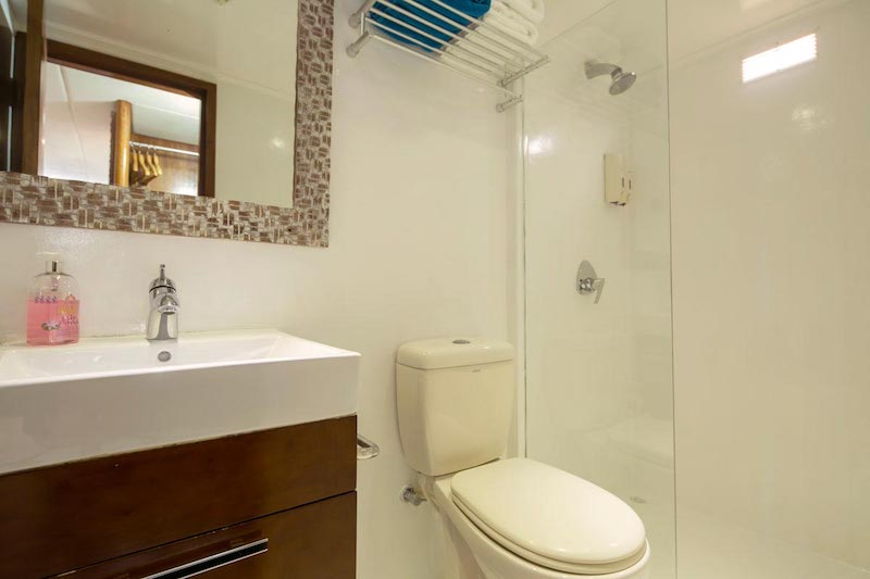 All cabins have individually controlled AC, safety deposit boxes and their own private bathroom with toilet and hot water shower.