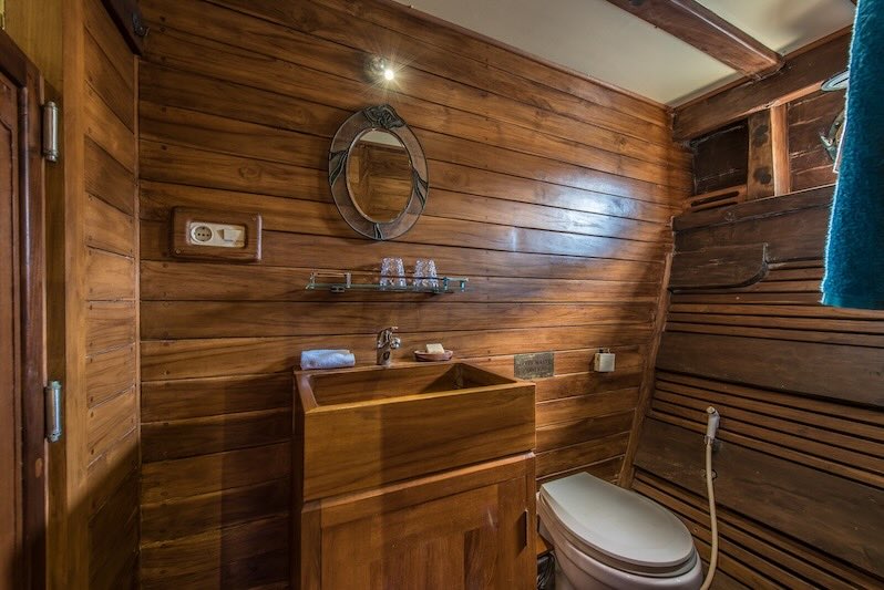 The Cengkeh cabin is on the lower deck and can be used as either a twin cabin or a double cabin as the twin single beds have been especially designed to be joined to form a comfortable double bed.