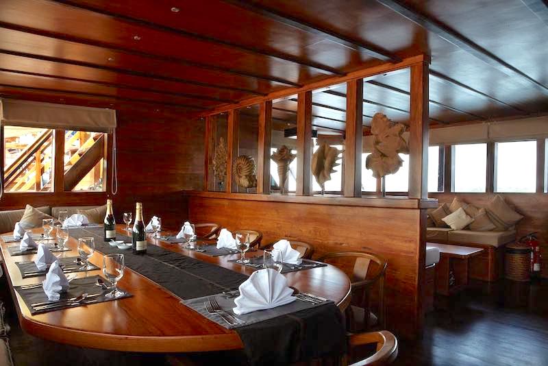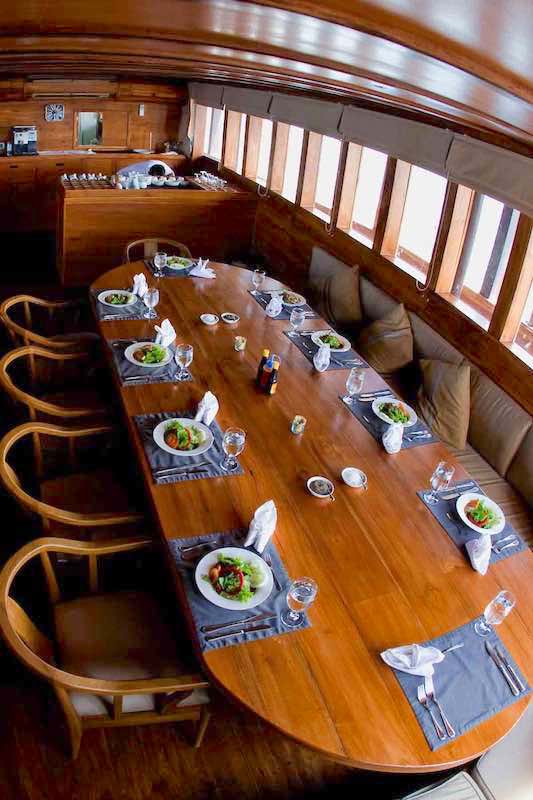 All core staff have been with the company between 8-12 years, 4 to 1 guide to diver ratio, no bottom time limit, free beer or wine at dinner, Treks, village visits, deserted beaches and wildlife exploration visits, 45 min welcome massage, only 12 guests and 18 staff.