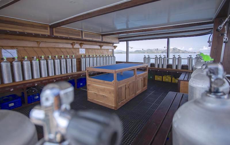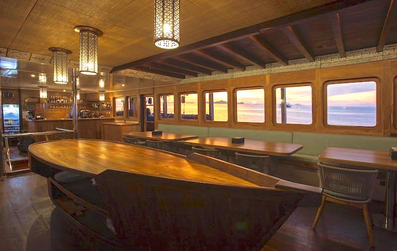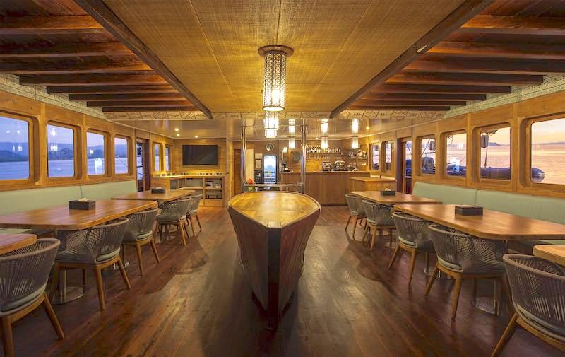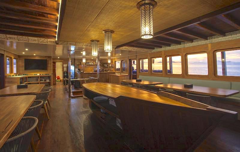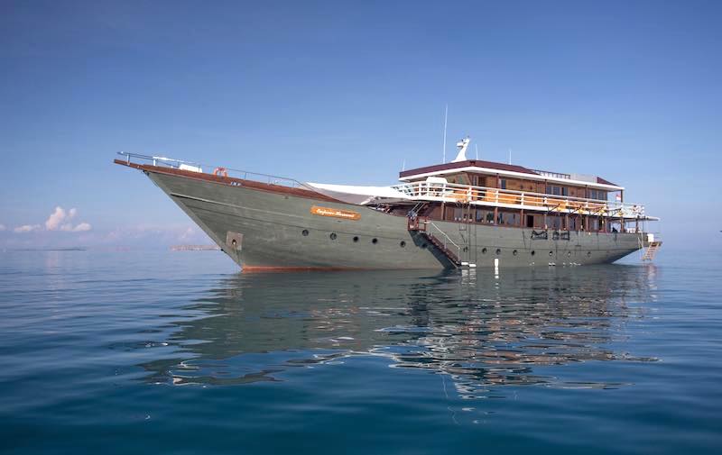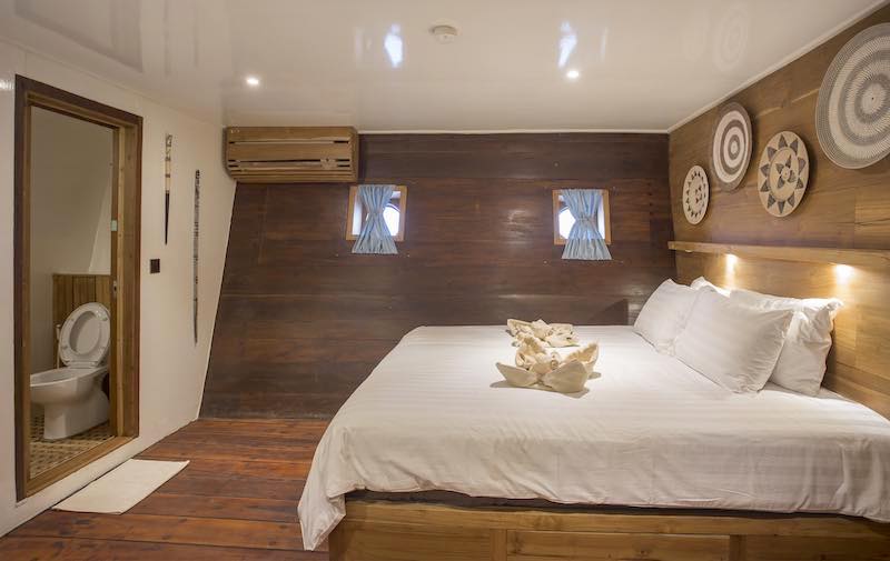 Built from Sulawesi Ironwood and one of only a select few liveaboards in this region to have two engines, at 48m she happily welcomes 24 guests in 12 well-appointed ensuite cabins all with air-con.