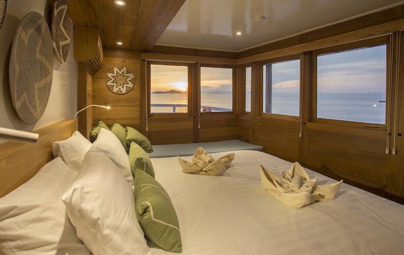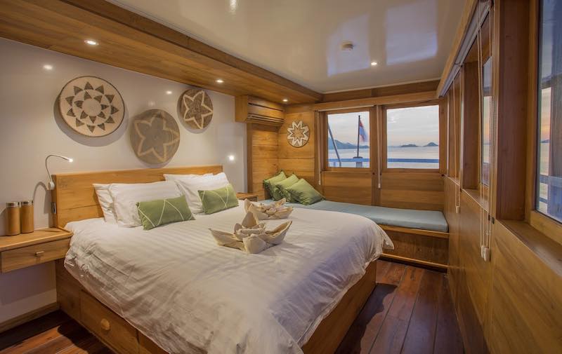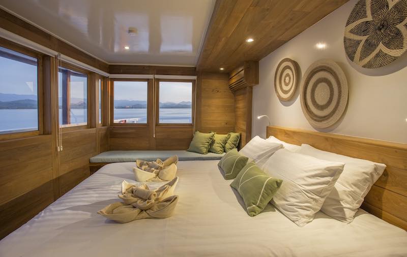 The Upper Deck Double cabins are approximately 14sqm with sea view windows and a double bed, individually controlled air conditioning, fan and mini-safe.