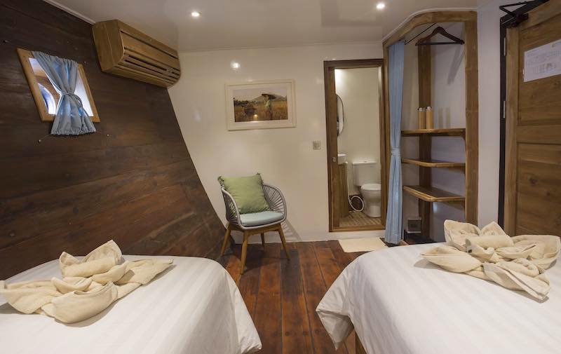 The Upper Deck Twin cabins are approximately 10sqm with sea view windows, individually controlled air conditioning, fan and mini-safe.