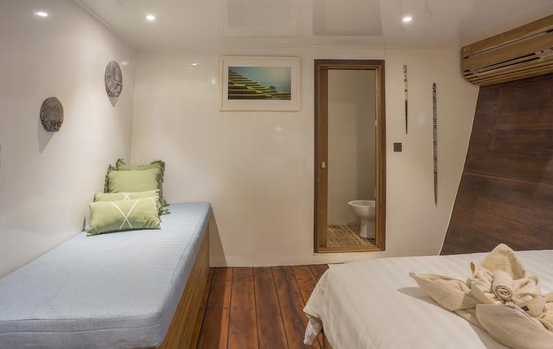The Lower Deck Twin cabins are 9-12sqm with port holes, individually controlled air conditioning, fan and mini-safe.