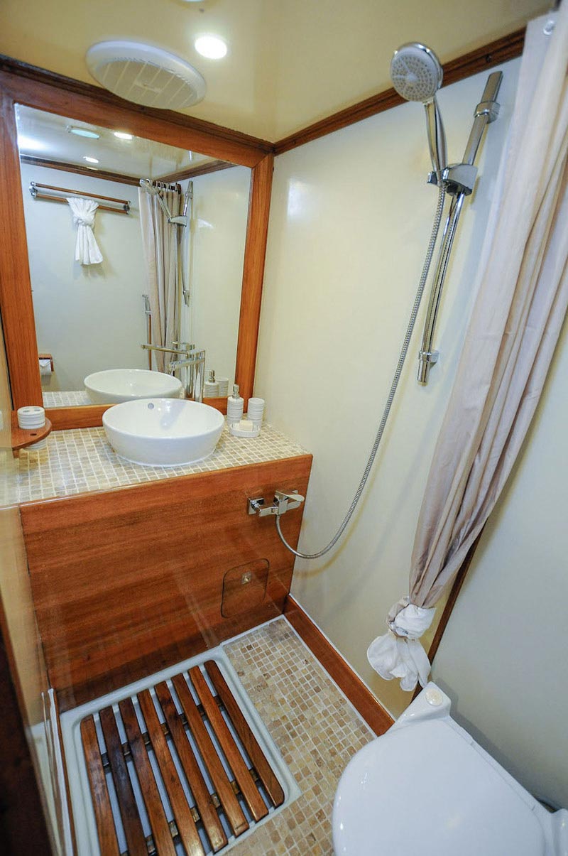 All cabins have individually controlled air conditioning, fan and mini-safe with an en-suite bathroom with shower with 2 cabin towels and one sun deck towel per guest.