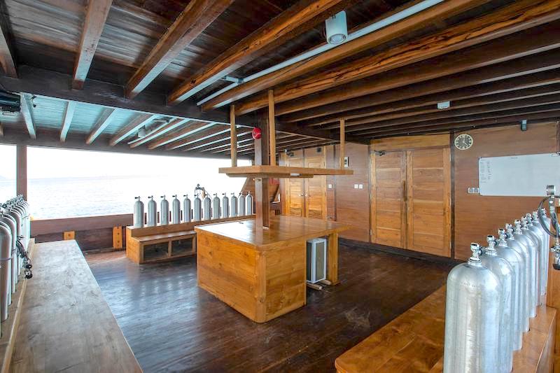 The dive deck has personal storage space for masks and other small equipment items and is likely to be one of the most spacious and comfortable you will have come across.