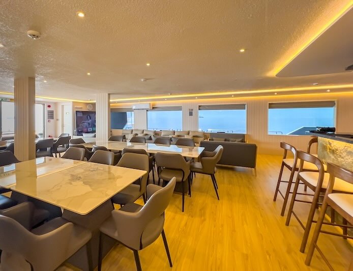 or those who love the sun, there are four sun decks, including viewing decks on both the mid and upper decks, an open-air top deck, and an ocean deck at the stern, all equipped with comfortable seating and loungers for maximum relaxation.
