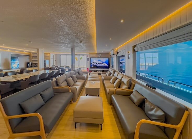 One of the standout features of the Maldives Master is its unique ocean deck, offering guests a front-row seat to the marine life below.