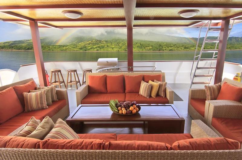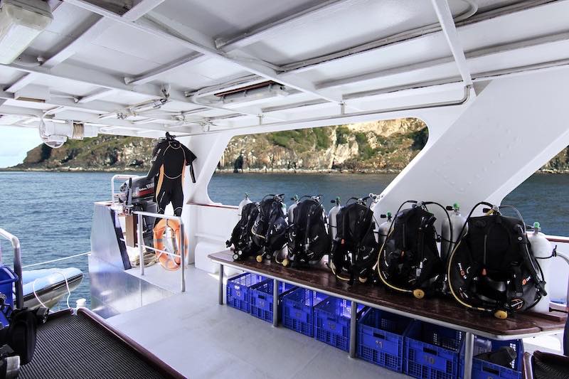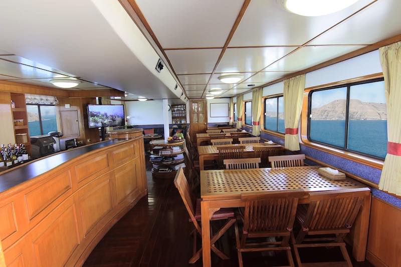 There is a wide stern dive platform with two exit ladders and fresh water showers. 4 camera rinse tanks, a large camera table and our resident on-board video and photo professional will help keep all the photographers happy and help with your all important lens decisions.