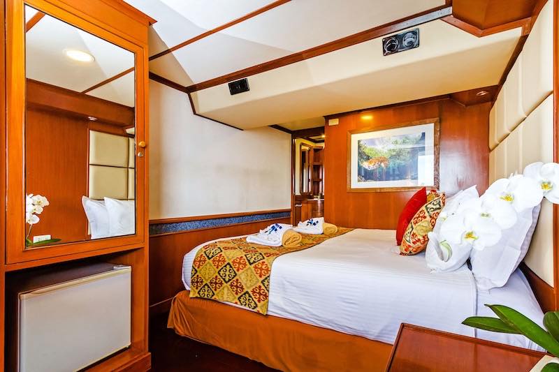The master, single and deluxe cabins have ensuite bathrooms, refrigerators and panoramic windows offering great sea views during your liveaboard.