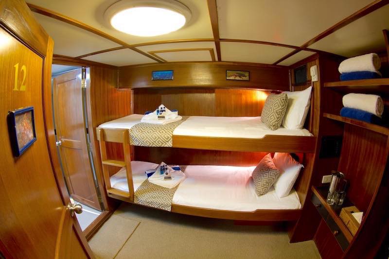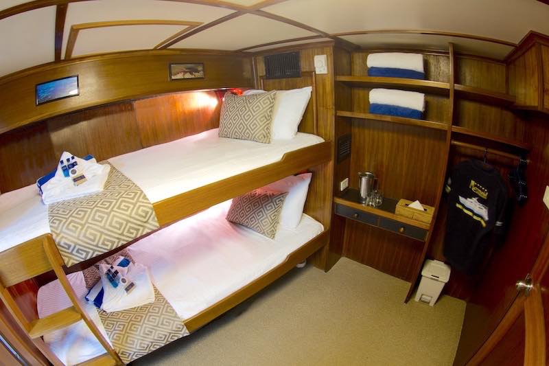 The standard cabin is located on the lower deck on MV Mermaid II.