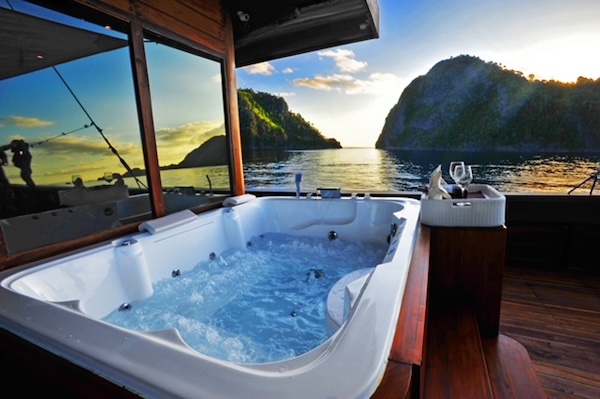 and on the upper deck, one double cabin, three twin or double cabins and a spacious Master cabin with a private balcony and bathtub.