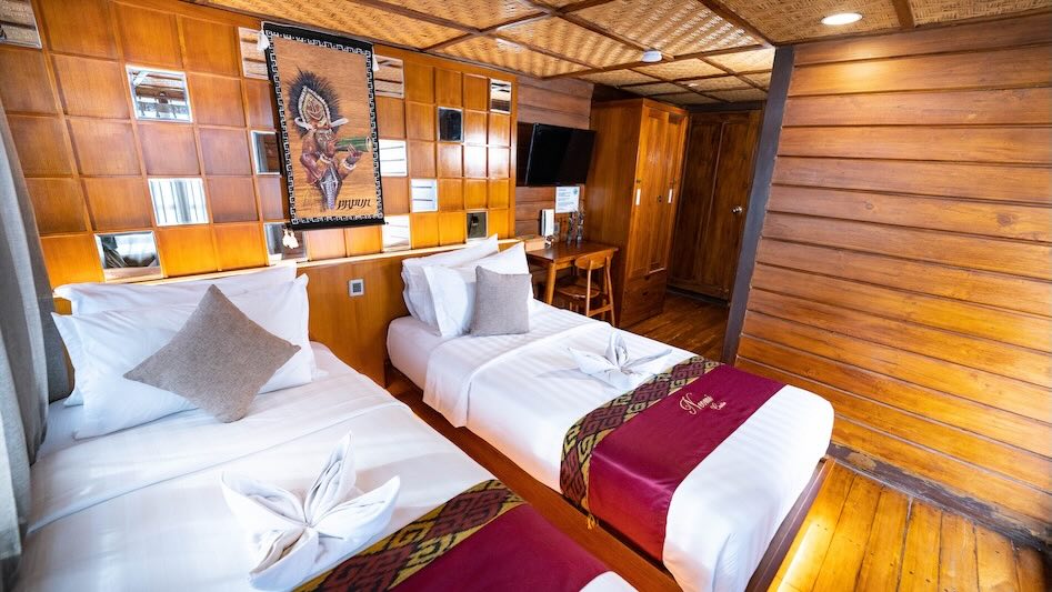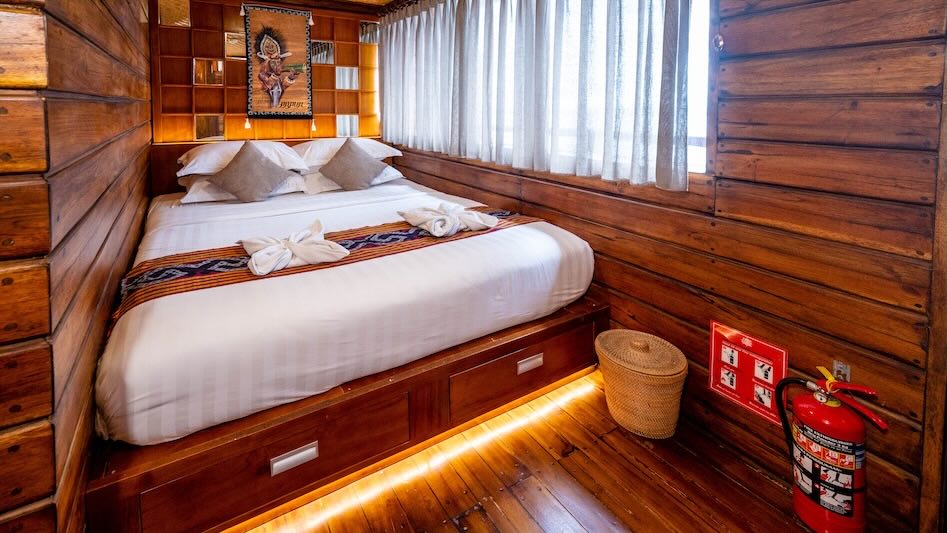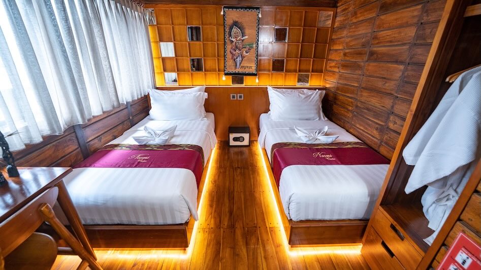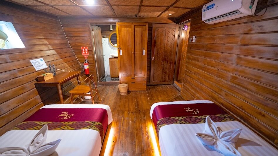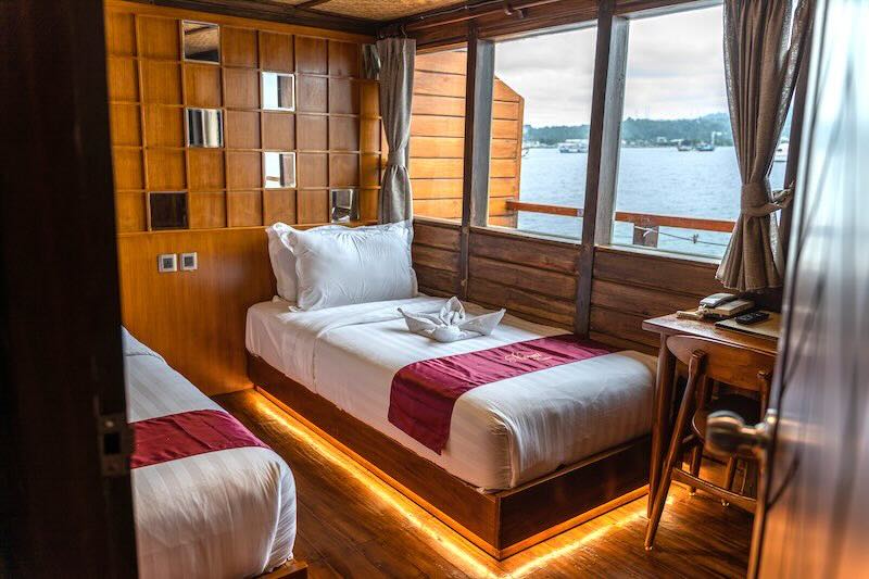 All cabins are equipped with en-suite bathrooms, air conditioning, and a safety deposit box.