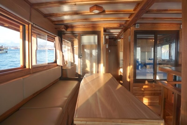Guests can relax in the fan-cooled lounge with dining seating for six, or on the sun deck with an awning, enjoying the sea breeze and stunning views.