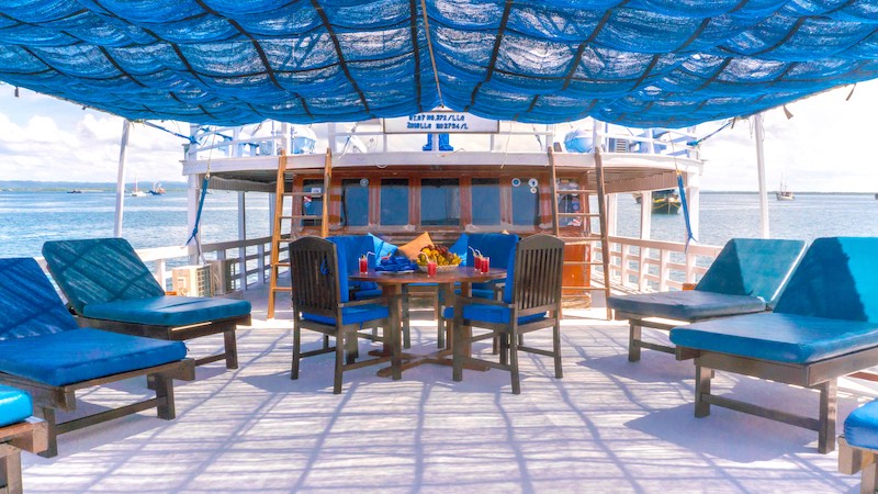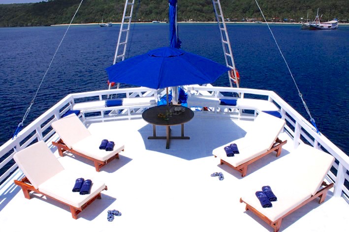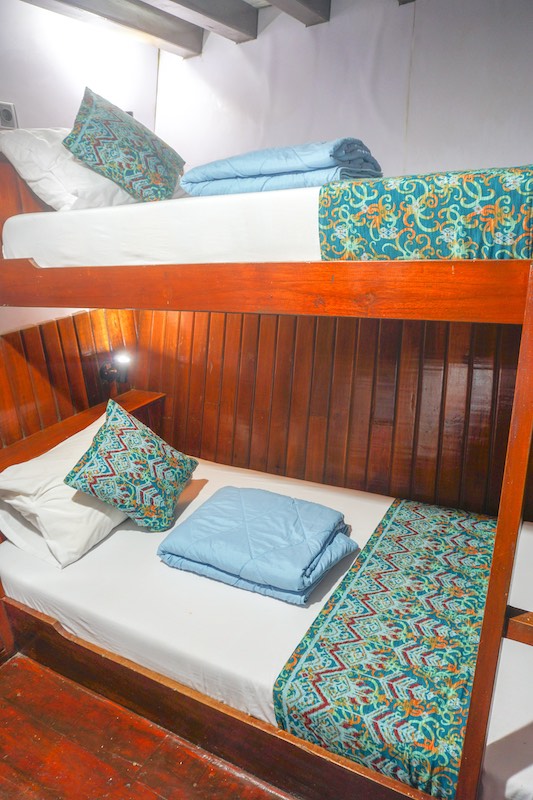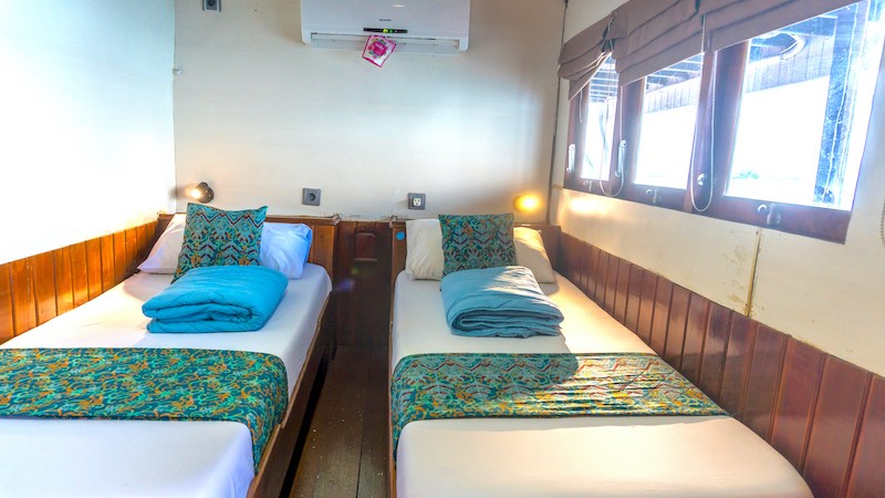 There are 2 Upper deck sea view suites, 2 deluxe upper deck cabins, 1 Lower deck Manta suite and 2 standard lower deck twin cabins.