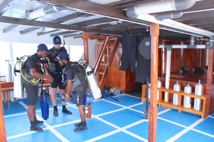 The team of twelve Indonesian crew members and dive staff are also highly knowledgeable and intimately familiar with the Raja Ampat area, guiding you to experience scarcely seen underwater treasures in addition to the best the region has to offer, while ensuring a pleasant and safe voyage.