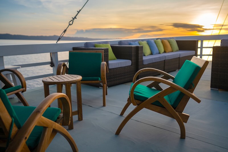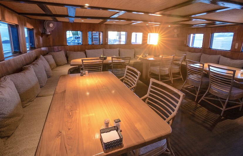 The Lounge is the place where everybody meets for meals, shares photos and videos betweendives, and socializes. Spend convivial hours playing games, telling tall tales, listening to music, or just kicking back at the end of the diving day with a cold Bintang (Indonesian beer) or a glass of fine Australian wine.