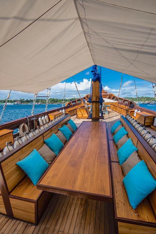 Samambaia provides a delicious and varied international cuisine prepared every day with locally sourced ingredients by thr chef, and the galley includes fresh ice-cream and daily baked bread and pastries. For relaxation you can choose the shaded sundeck and soak in the spectacular Indonesian views on the comfortable loungers, or enjoy a relaxing massage from the on board masseuse.