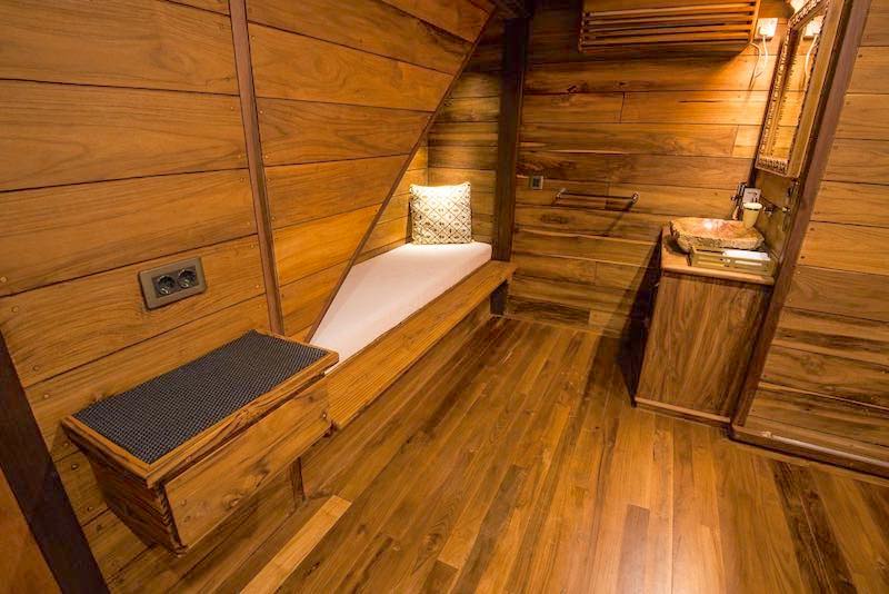 Each cabin has a private en-suite bathroom, under bed storage, wardrobes and individually controlled AC.