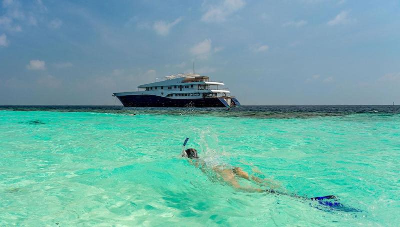 Travel from the airport to the location of the boat is organized by Dhoni boat (dive boat) & takes approximately 20 minutes.