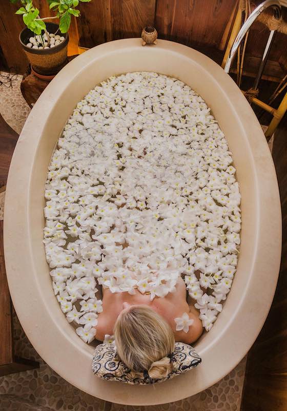 Sensuous driftwood sculptures blend with earthy and jewel tones to provide a relaxing setting.