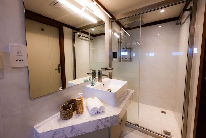 Each cabin has air conditioning and en-suite private bathroom.