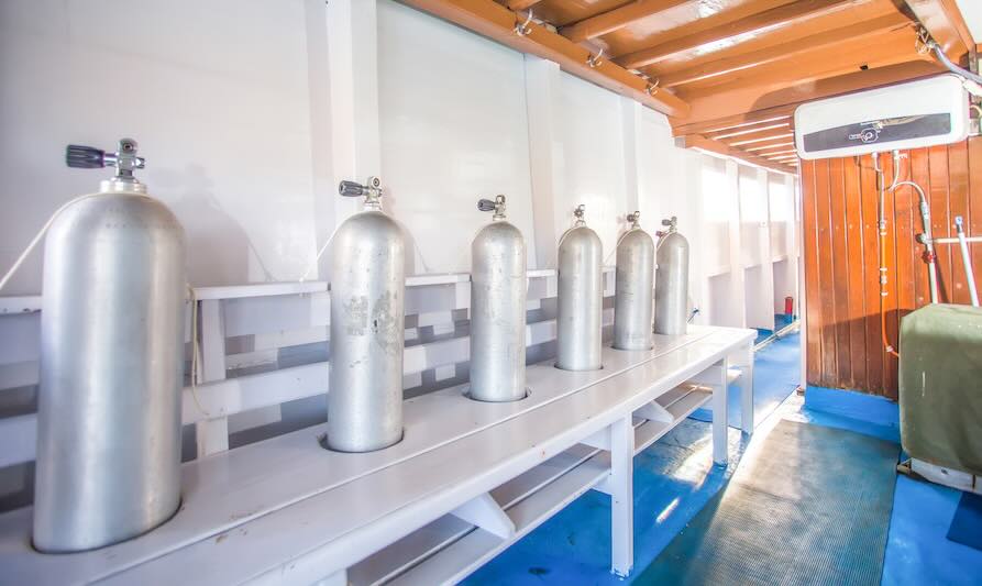 The onboard Bauer compressor ensures that air and Nitrox fills are always available.