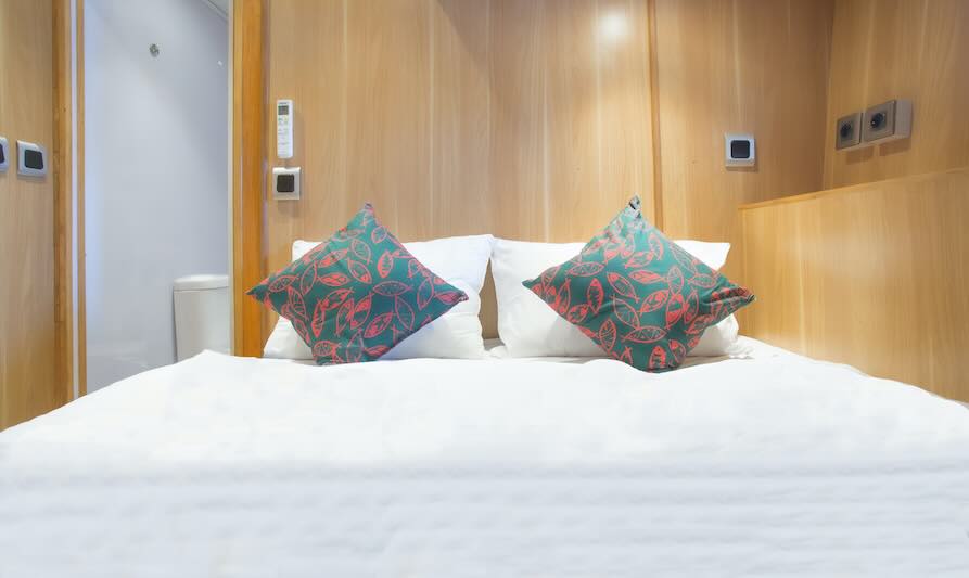 Onboard, there are six well-appointed air-conditioned cabins, each designed with comfort in mind.