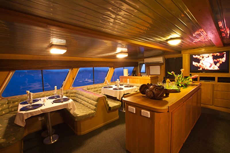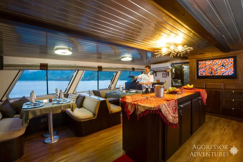 The Thailand Aggressor has a beautiful spacious salon, large sun deck with shading, Jacuzzi hot tub, chaise lounges and deck chairs, bar, grill and a complete photo/video center. The onboard video format is both NTSC and PAL.