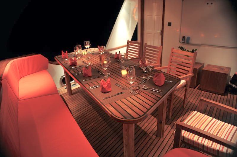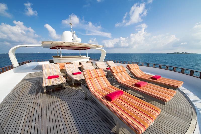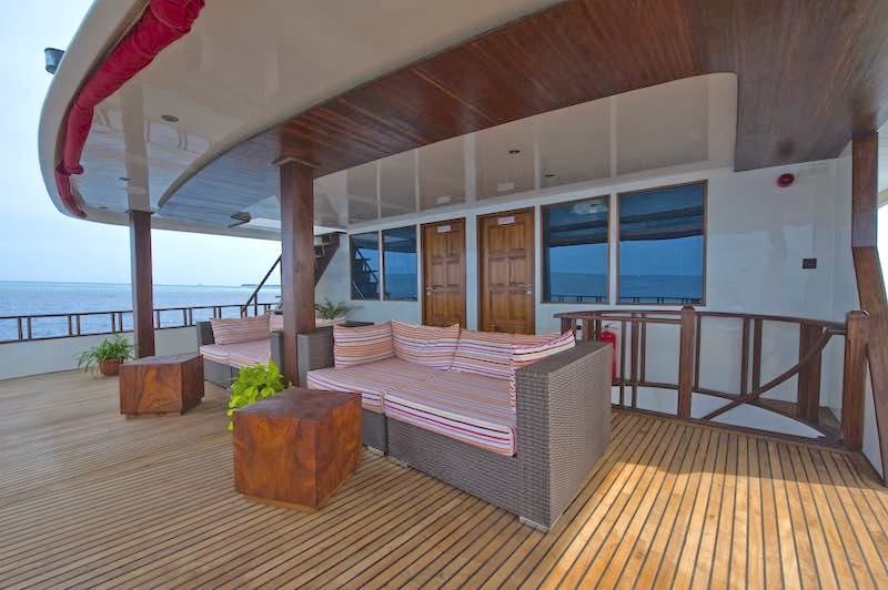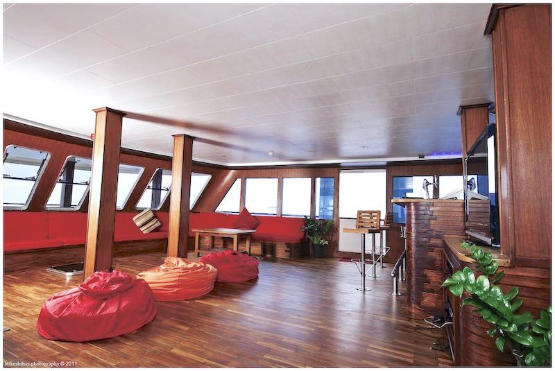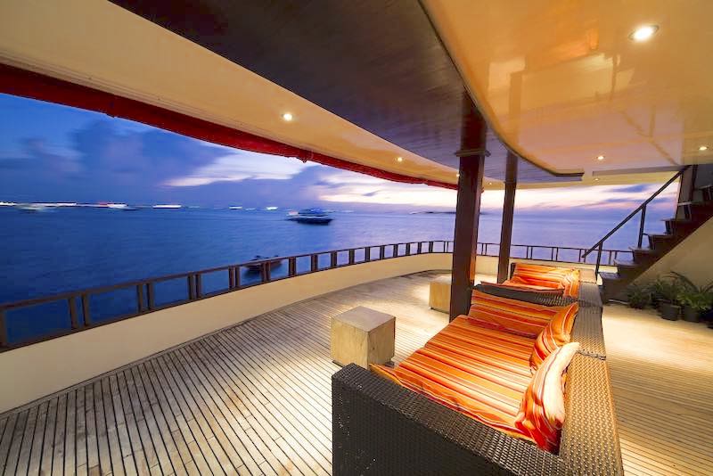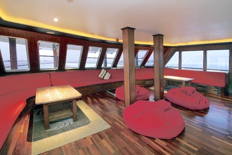 The main deck houses a spacious living room designed for comfort and relaxation with panoramic views which compliments the sun deck and the sunset from the sky bar.