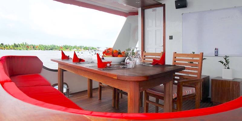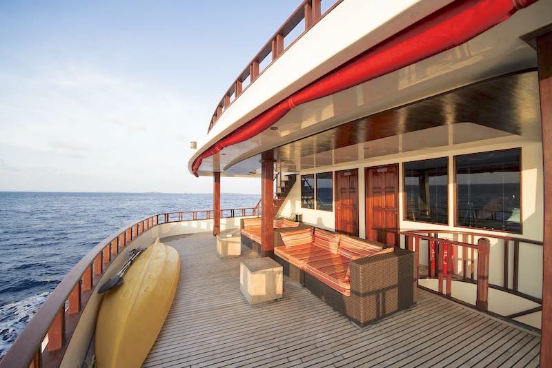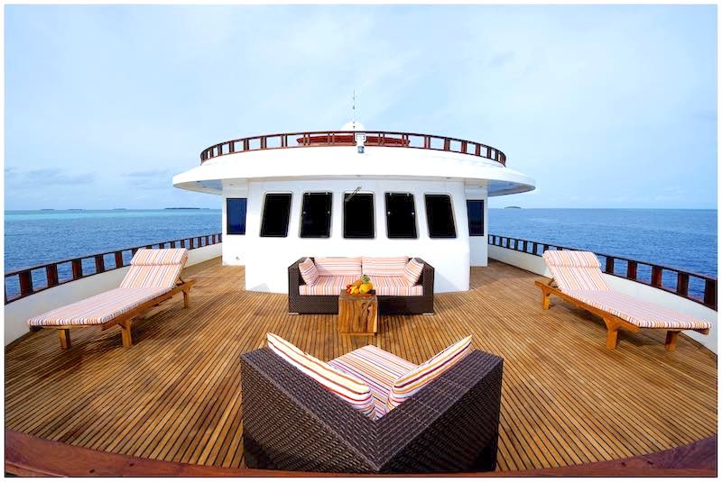 Theia offers luxury accommodations for 20 guests, exceptional service, and world-class diving experiences with Nitrox, Green Tax, GST and service charge included in the price. With a spacious design, top-of-the-line amenities, and knowledgeable crew, guests can explore the stunning coral reefs and abundant marine life of the Maldives in comfort and style.