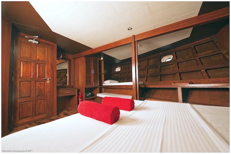 There are 3 Upper deck en-suite Premium cabins that can be a double or twin cabin and also 1 Superior cabin with a double and single bed.