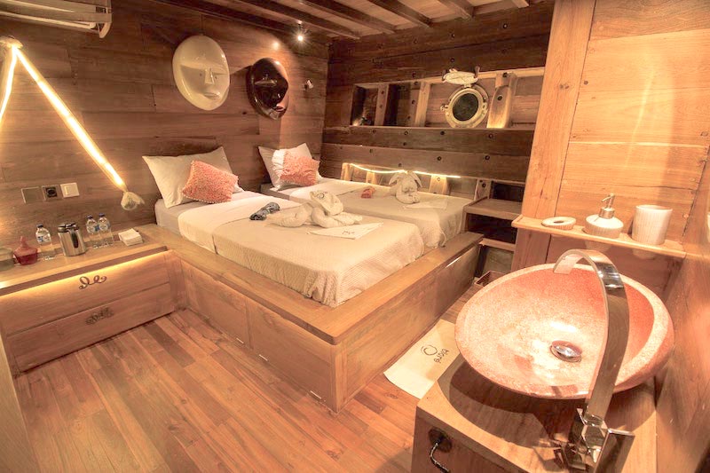 More like a 5-star hotel than a boat, the six cabins on Tiaré are your home away from home designed with relaxation and the perfect sleep in mind.