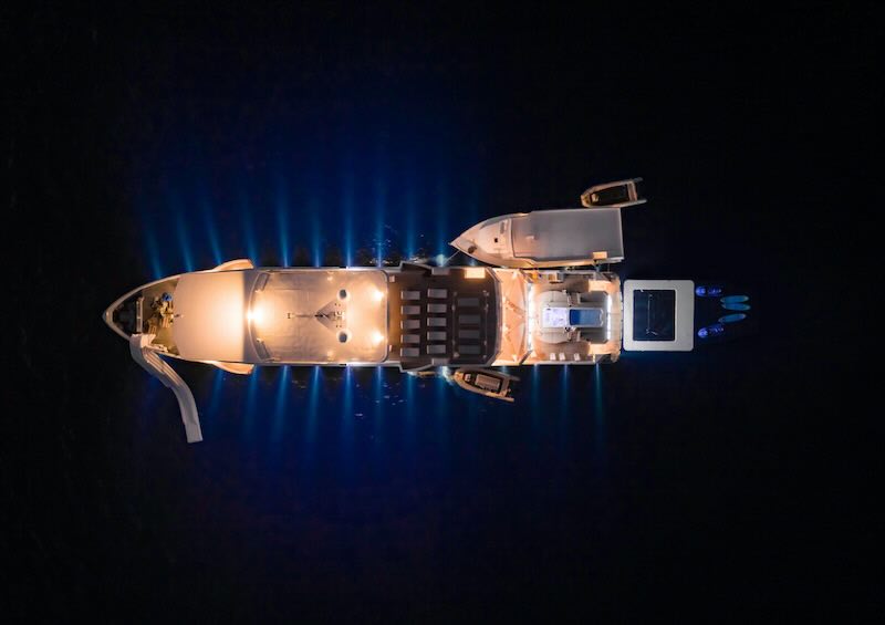 It features two Cummins KTA38-M3 engines, generating 746 KW/1015 Bhp, and three all-purpose built aluminium tender boats.