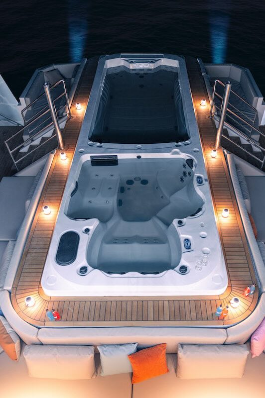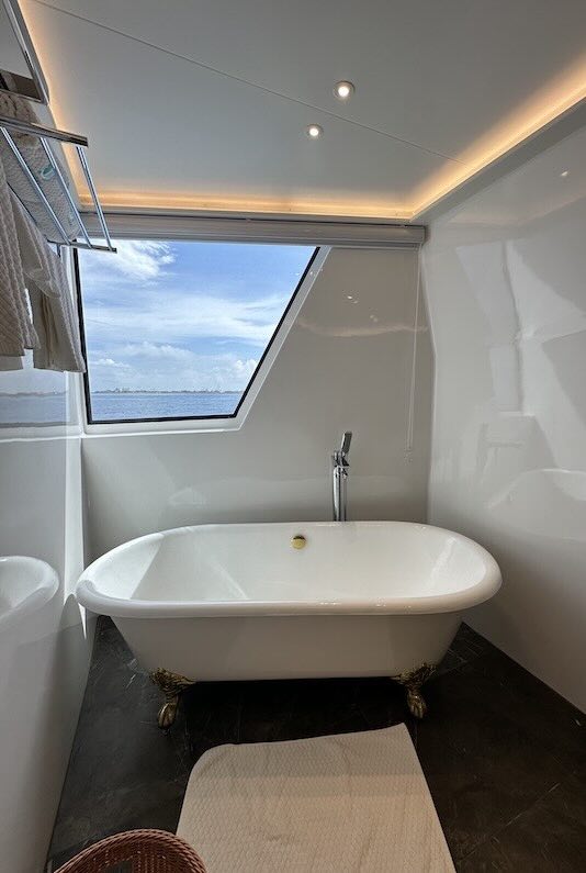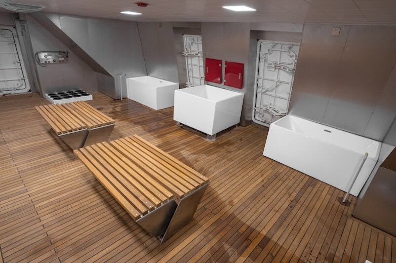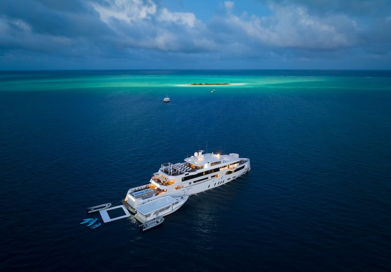 This is a stunning high end diving liveaboard with Free Nitrox and WiFi, a 6 meter jacuzzi and water slide, all cabins have a seaview, free use of SUP boards and Kayaks with GST and fuel surcharge included in the trip price and an on-board spa and jet ski at an extra charge whilst still being a top end dive boat.