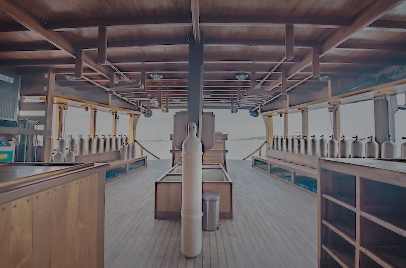 The dive deck is designed for your convenience, featuring a personal diving station with ample space to gear up, on-site tank filling, dedicated storage boxes, and rinse tanks.