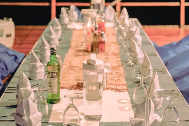 4 divers to 1 guide ratio creating a personalized service with professionally trained dive guides with Free Nitrox and enos diver beacons and dedicated dive deck that also welcomes non-divers. Satellite internet is available. Indoor and outdoor dining with a mix of Asian and Mediterranean Cuisine.